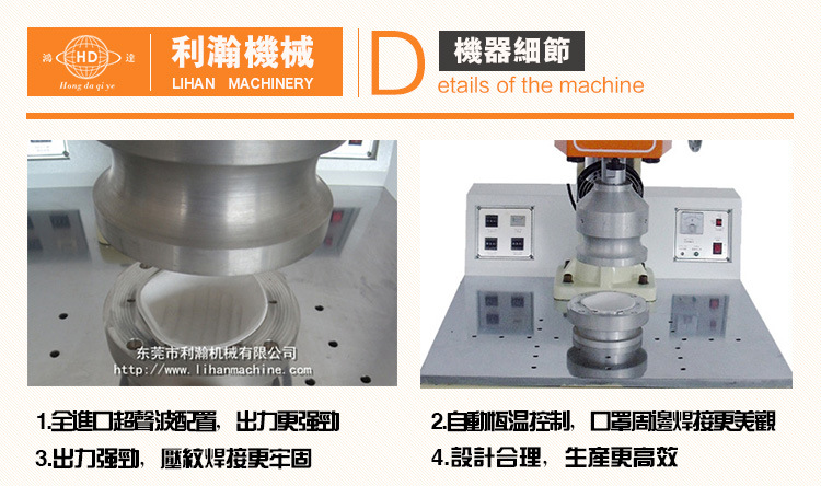 2.選用超聲波單工位焊接,焊接作用漂亮,抽拉式放料,便于操作。