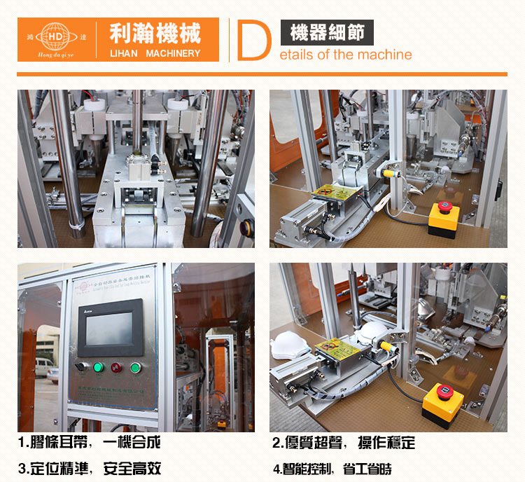 4.結構合理,模具可調,膠條焊接漂亮,耳帶焊接結實,焊點均勻。