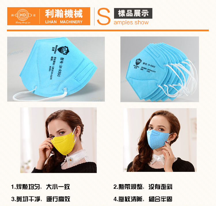5.出產的制品,耳帶定位精準、耳帶焊接結實漂亮、拉力微弱。