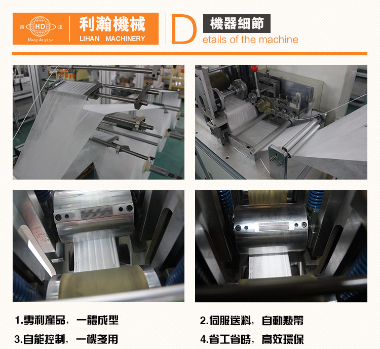 “鴻達牌”一拖二平面口罩外耳連線機,是為出產(chǎn)高端口罩的抱負設(shè)備,設(shè)備從質(zhì)料進入到制品輸出,全程主動作業(yè),削減口罩在出產(chǎn)過程人體的觸摸,然后輕松到達職業(yè)檢測規(guī)范,進步產(chǎn)品的環(huán)保中客戶而精研出來的,在產(chǎn)能方面到達較高的出產(chǎn)量; 該機是三臺設(shè)備組成,即平面口罩本體機一臺,外耳帶設(shè)備兩臺,經(jīng)過程序控制,將口罩本體主動傳送到耳帶焊接設(shè)備上,然后到達全主動化作業(yè), 大極限的降底了人工成本。