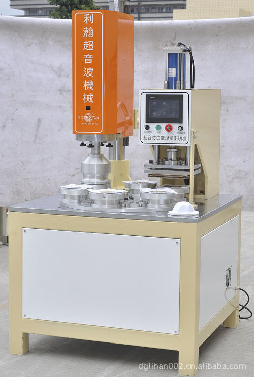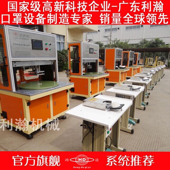 杯型口罩焊接沖切機(HD-LHKZJ03):該機選用PLC操控,人機界面觸摸屏顯現,充沛顯現人性化操作理念;;選用超聲波焊接,順便特制刀模切料設備,焊接沖切一次完結,壓邊精巧結實且不傷資料;沖切作用一流,不脫邊不散邊;焊接與切料兩機頭一起作業,六個工位主動轉盤,動作精準無誤差,填補了國內N95口罩出產焊接與沖切無法一機一起出產的空白;該機只需兩人放料,取料,操作便利方便,產值極高,肯定是N95口罩出產廠家的首選產品。