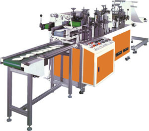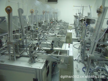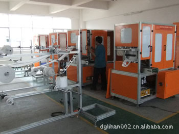 3.綁帶式口罩出產線:1臺口罩本體機 加 4-5臺綁帶式口罩機組成。