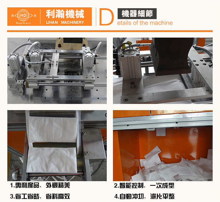 全主動過濾棉沖切機,是利瀚企業熟練掌握口罩出產工藝后, 依據口罩特色,推行出新的一款新式設備,本機主動化程度高, 經過PLC編程操控,可主動完結從送料、焊接、切邊等多道工序,一次完結,特別的定位糾偏體系,可 大極限的削減資料糟蹋,并且有用的確保了出產出的濾芯棉;“鴻達”牌超聲波全主動濾芯機所出產的濾芯棉具有強效過濾及其纖細粉塵,并可達病毒級過濾作用!過濾等級可達R95(能夠過濾95%以上的0.03微米以下的超細粉塵,可達病毒級過濾作用!)此棉有靜電吸咐功用,能吸咐極細顆粒.越細粉塵,更能體現出其作用的杰出,其特色如下: