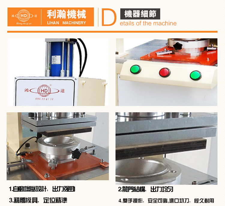 “鴻達”牌半自動口罩沖切機是利瀚企業熟練掌握口罩生產工藝后, 依據不同客戶需求移風易俗的一款專用設備,本機操作靈活, 可合適不同型體的口罩進行周邊沖切, 選用液壓二次沖切, 加裝感應用具確保安全及口罩周邊沖邊無毛絲, 可多個口罩一起切邊.其特色如下